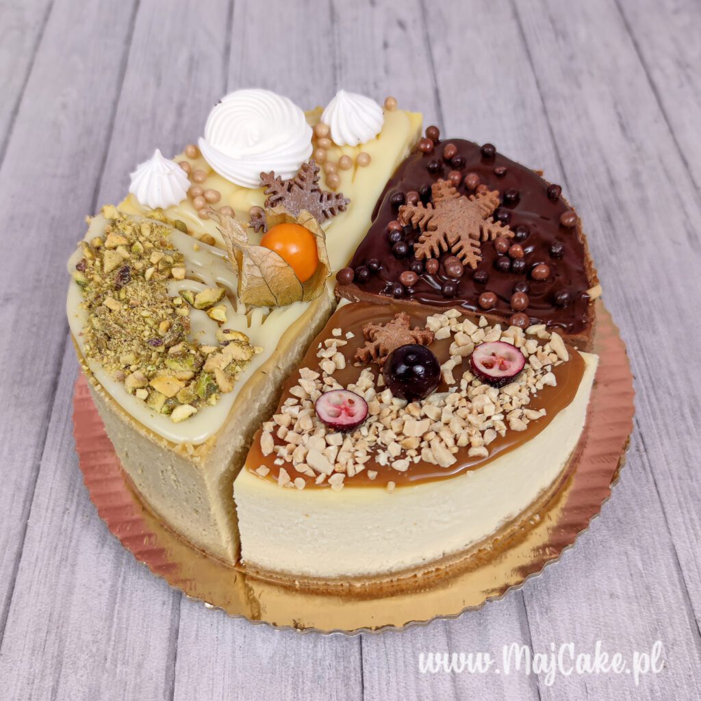 Odkryj nasz wyjątkowy sernik dzielony na 4 części, który pozwala Ci cieszyć się czterema ulubionymi smakami w jednym wypieku. Nasza oferta zawiera pięć niezwykłych smaków do wyboru: