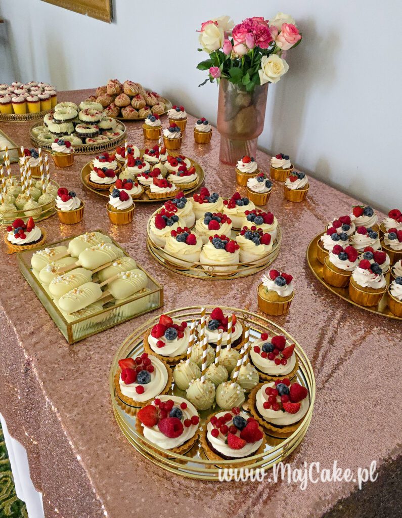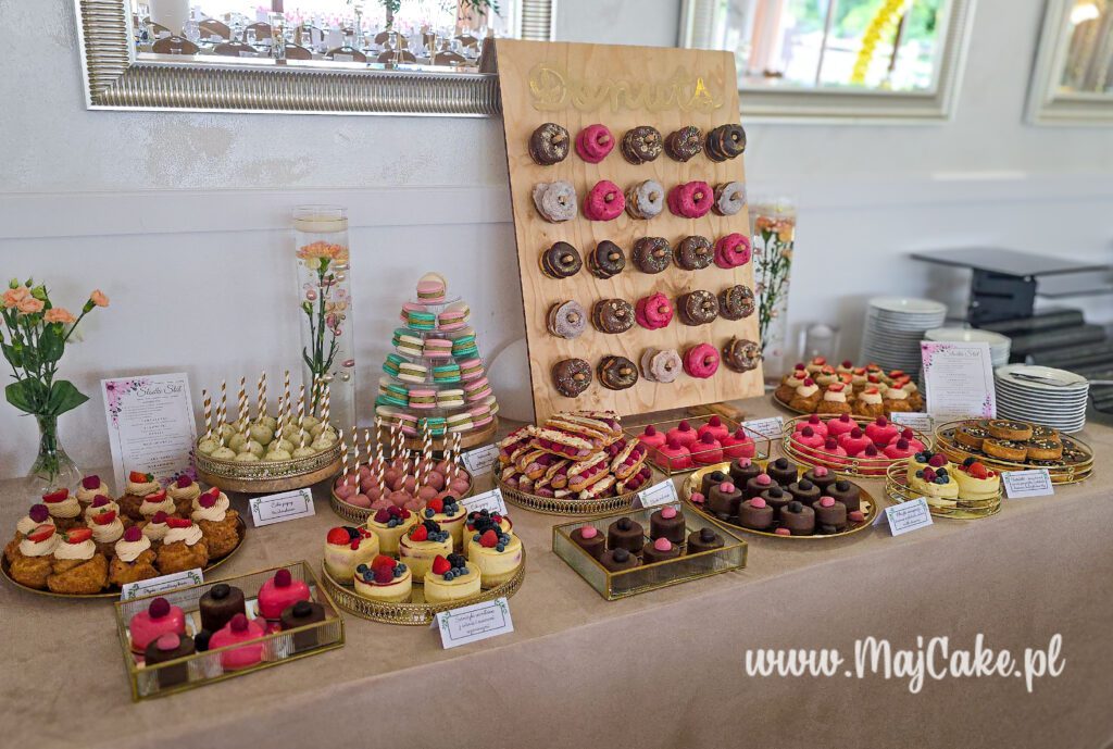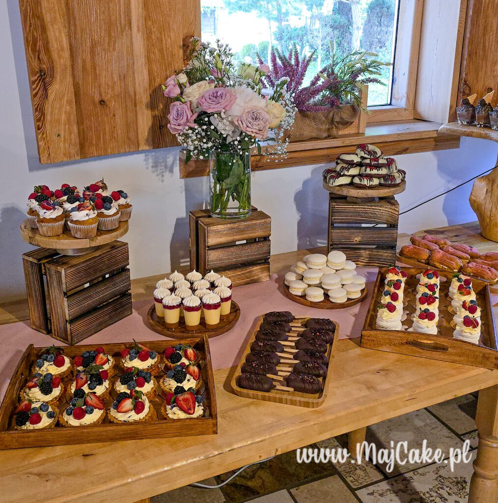 Zestaw Słodki stół STANDARD to najczęściej wybierany pakiet MajCake – idealny na wesela, komunie, przyjęcia firmowe lub rodzinne spotkania.